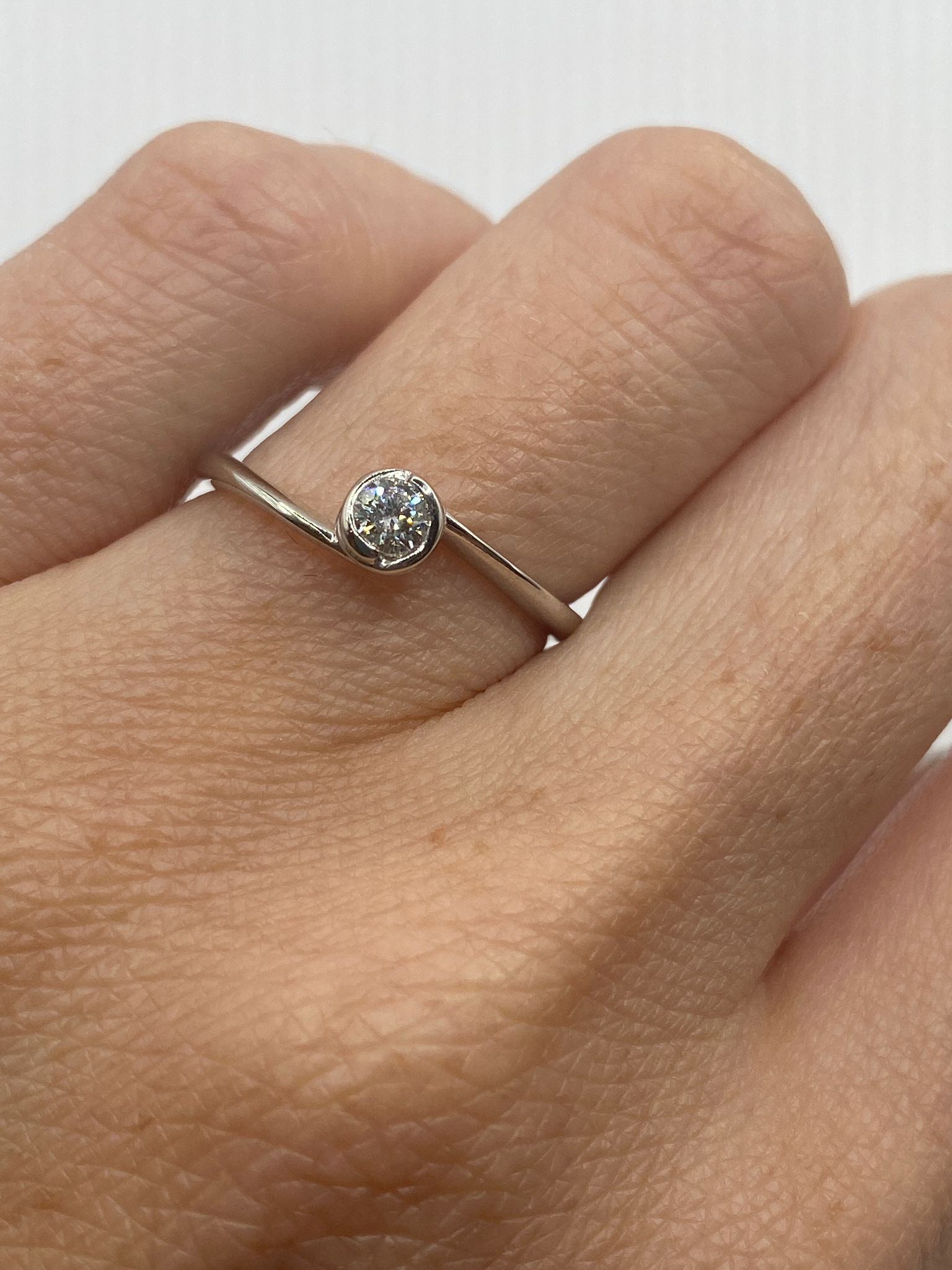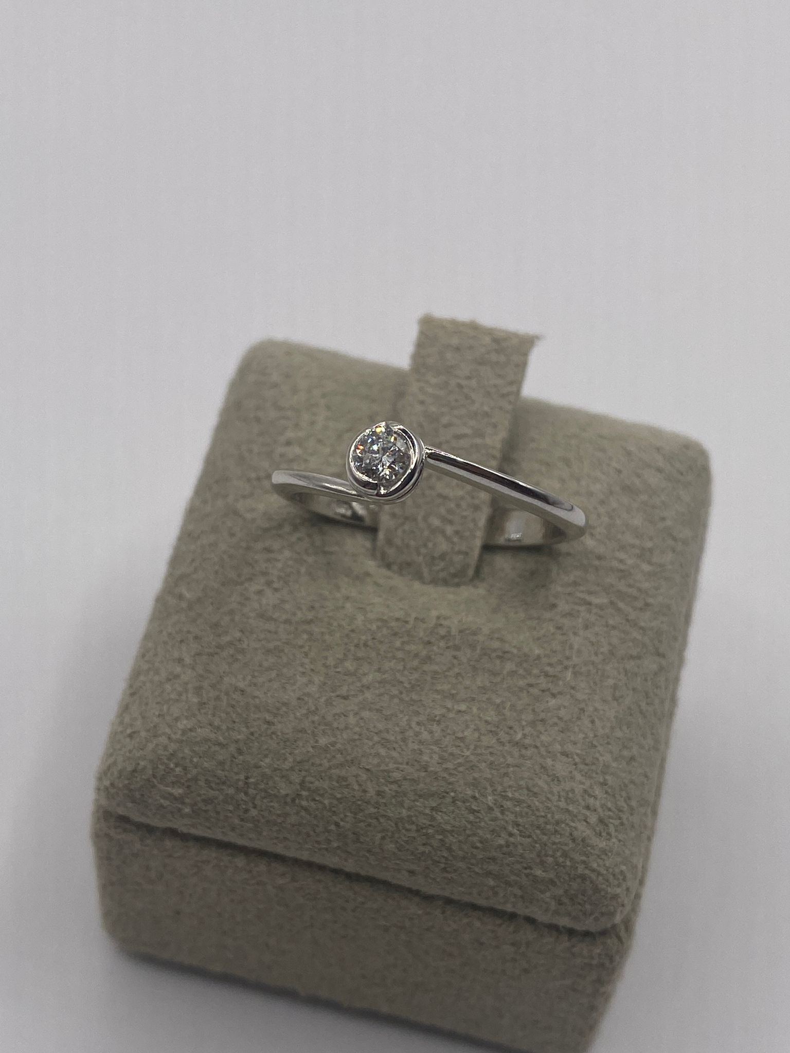 Splendido anello con diamante taglio brillante in oro bianco 18k.