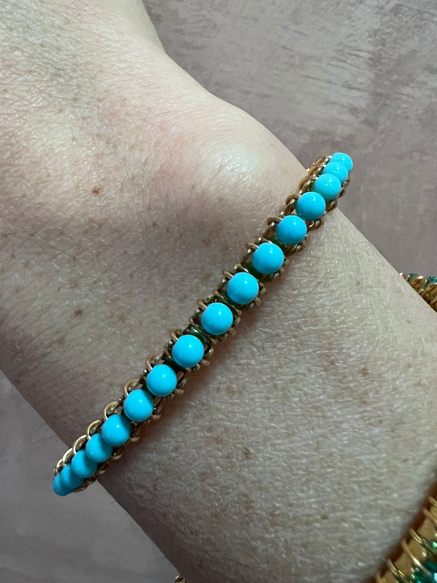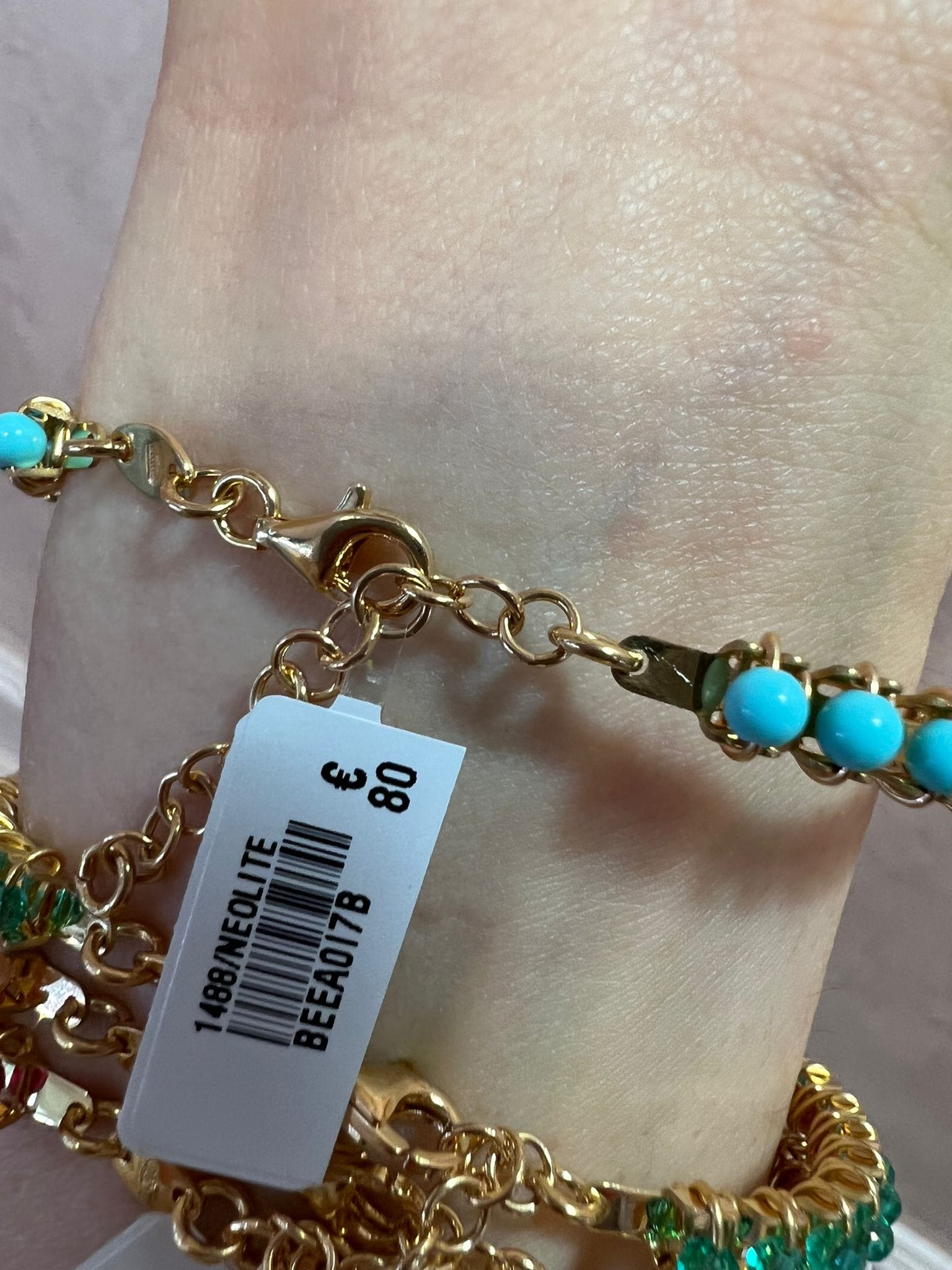 Bracciale semi rigido in argento 925 dorato con neolite e chiusura con moschettone regolabile.