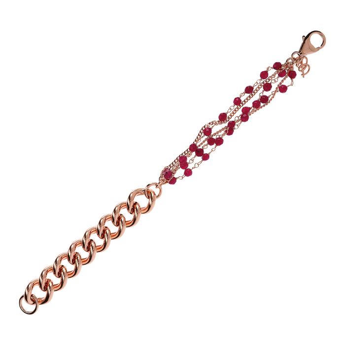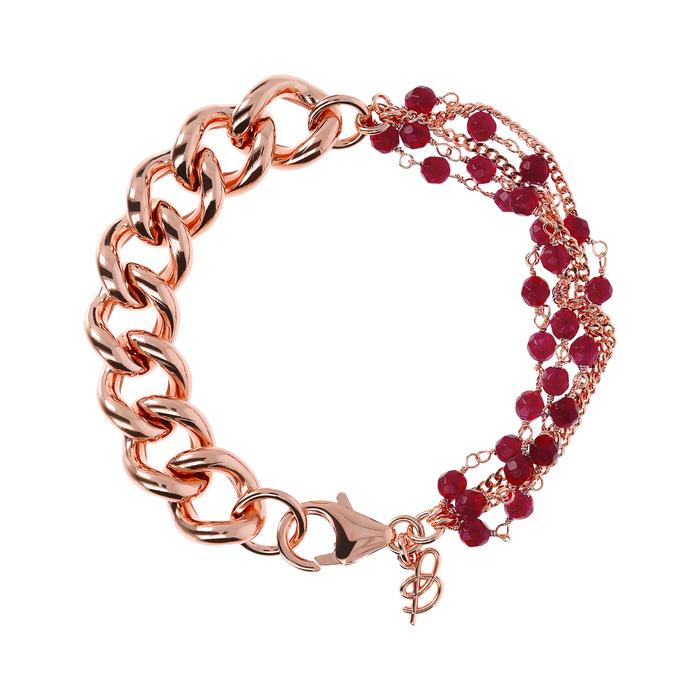 Bracciale rosario con maglia groumette in golden rosè con placcatura oro rosa 18kt e agata prugna.