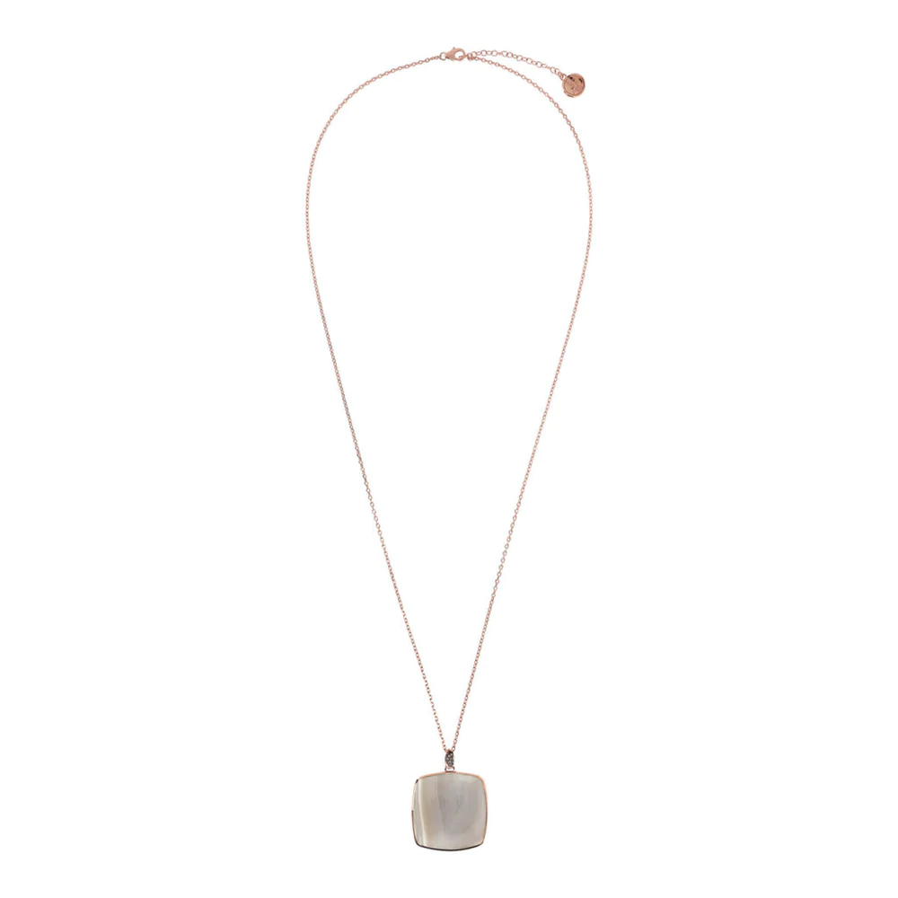 Questa collana lunga Bronzallure incorpora un pendente quadrato in pietra naturale e una contromaglia pavé. Un gioiello in Golden Rose placcato oro rosa 18 carati con catenina sottile raffinato ed elegante.