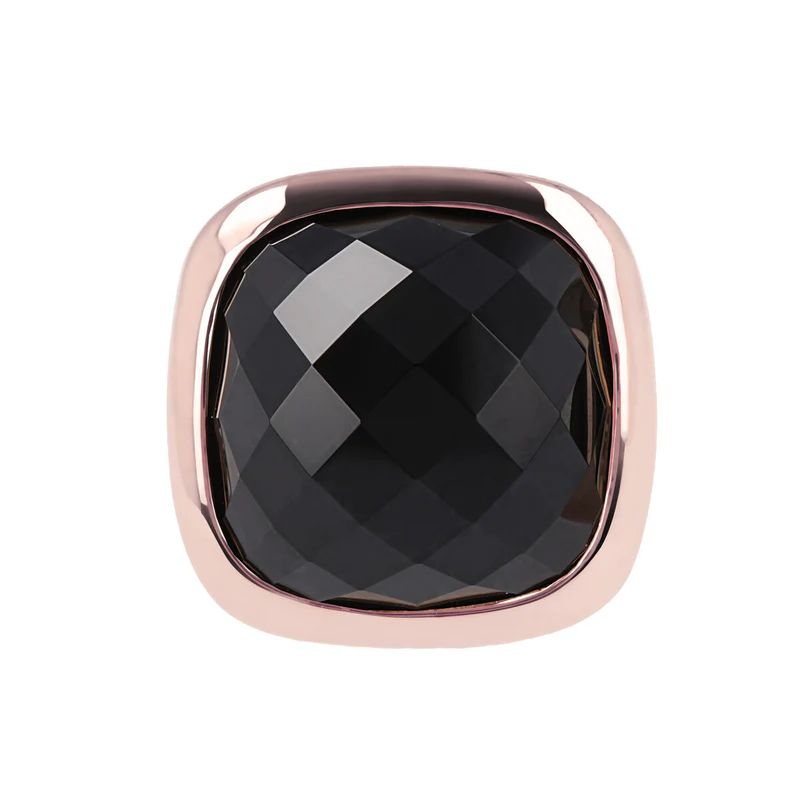 Maxi anello donna in golden rosè con placcatura in oro rosa 18kt e onice nero.