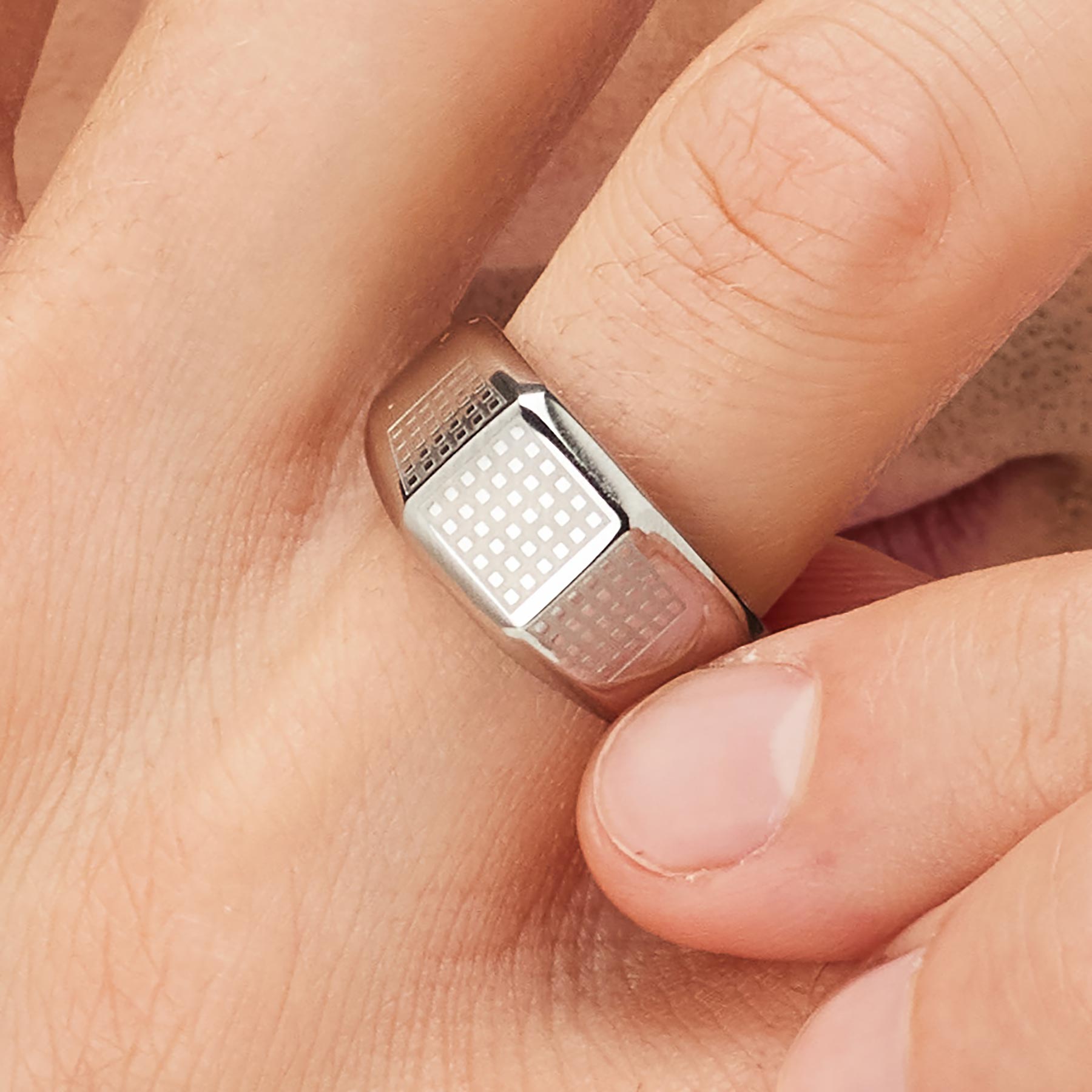 Anello sigillo in acciaio 316L lucido e sabbiato.