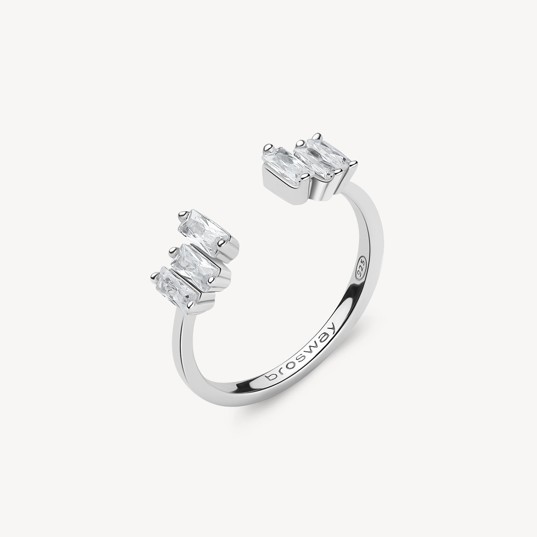 Anello in argento rodiato 925‰ con baguette cubic zirconia.