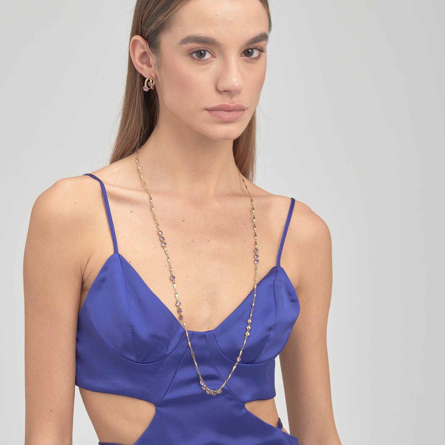 Collana lunga in acciaio 316L, finitura color oro e cristalli Swarovski© iris.