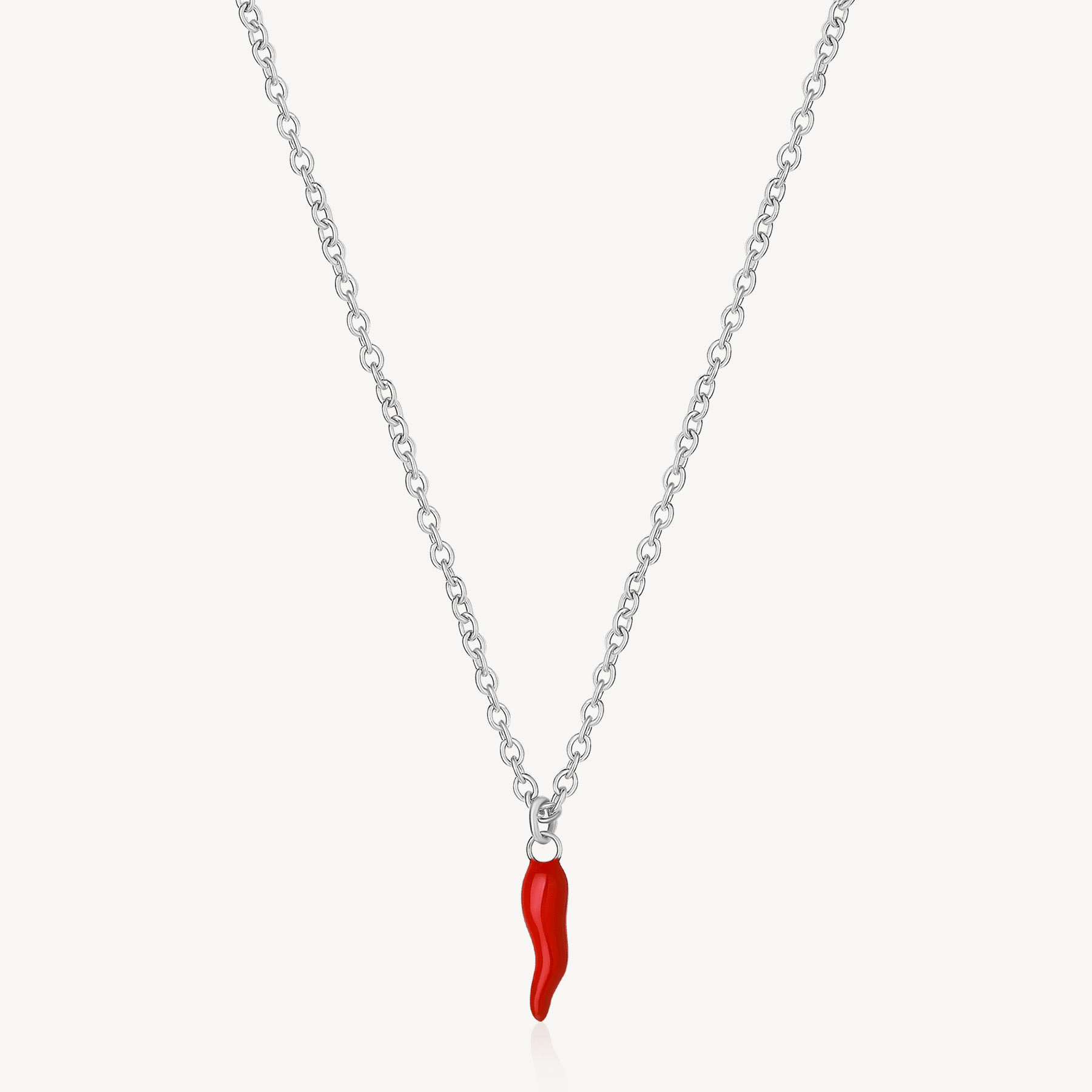 Collana girocollo in acciaio 316L, con pendente a forma di cornetto con smalto rosso.