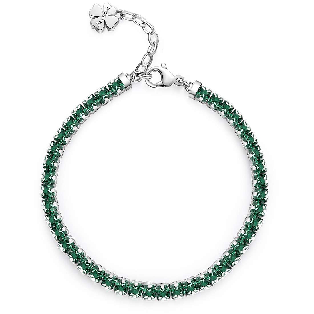 Bracciale tennis in acciaio 304 con cubic zirconia quadrati emerald e pendente chiusura a forma di quadrifoglio.