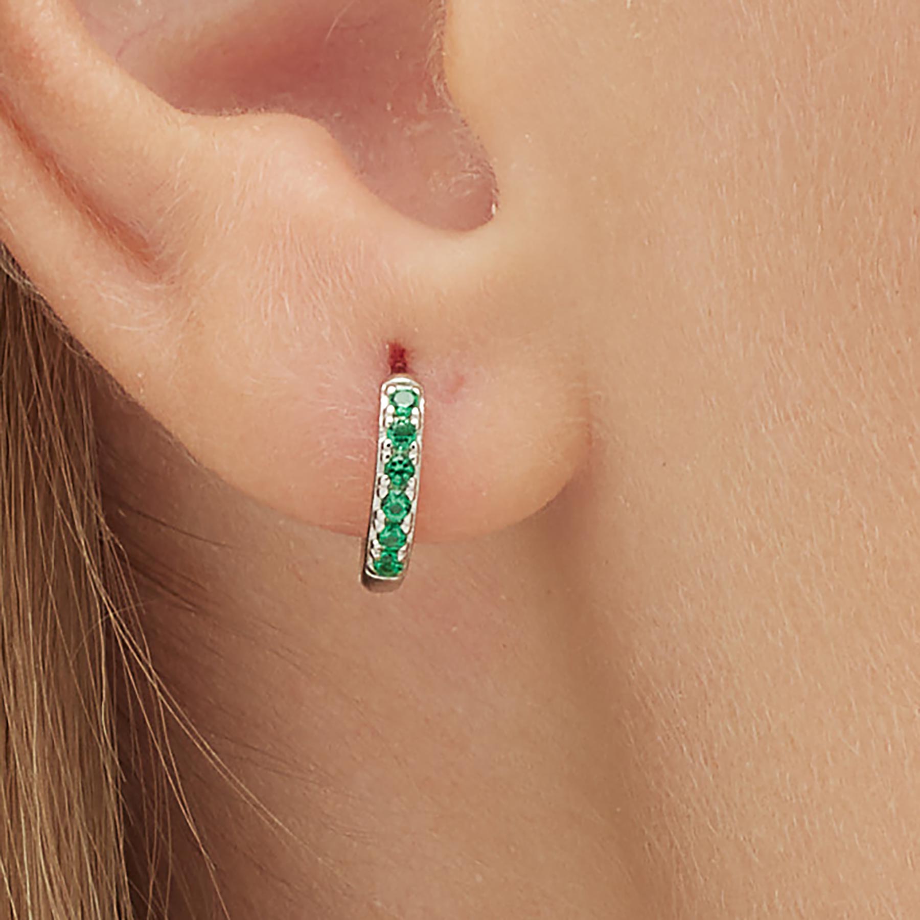 Orecchino singolo a cerchietto in argento rodiato 925‰ con cubic zirconia colore emerald.