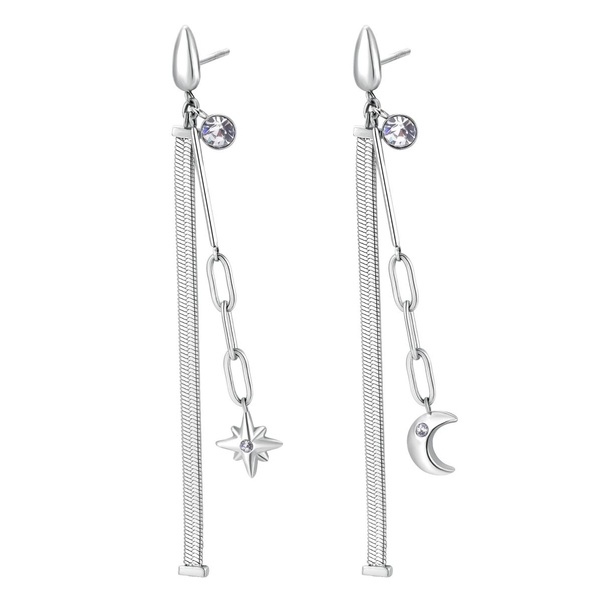 Orecchini pendenti in acciaio 316L con pendenti a forma di stella e luna e cristalli crystal.