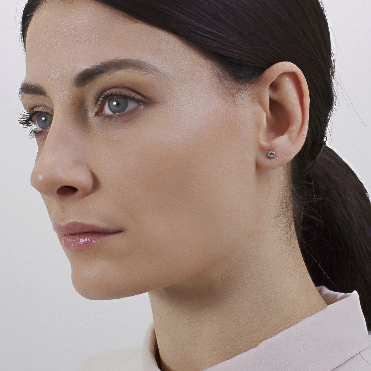 Orecchini punti luce in acciaio 316L e finitura color oro con cubic zirconia spinel.