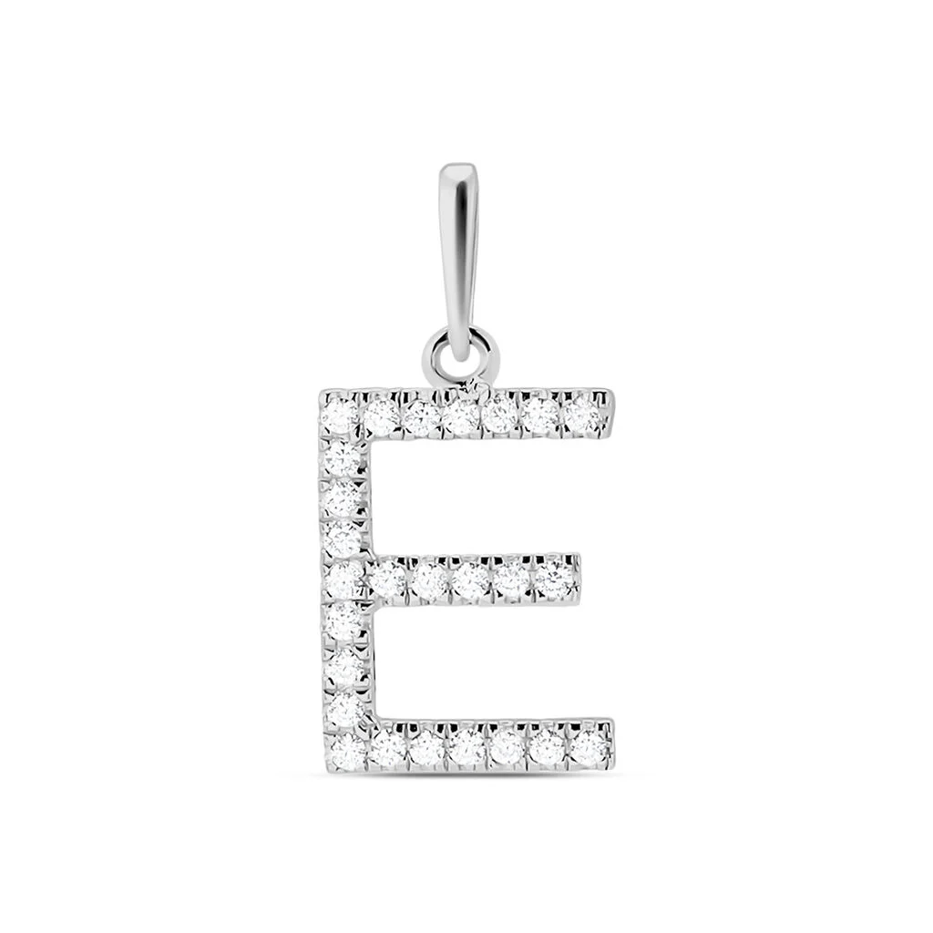 Ciondolo lettera E in oro bianco e zirconi
