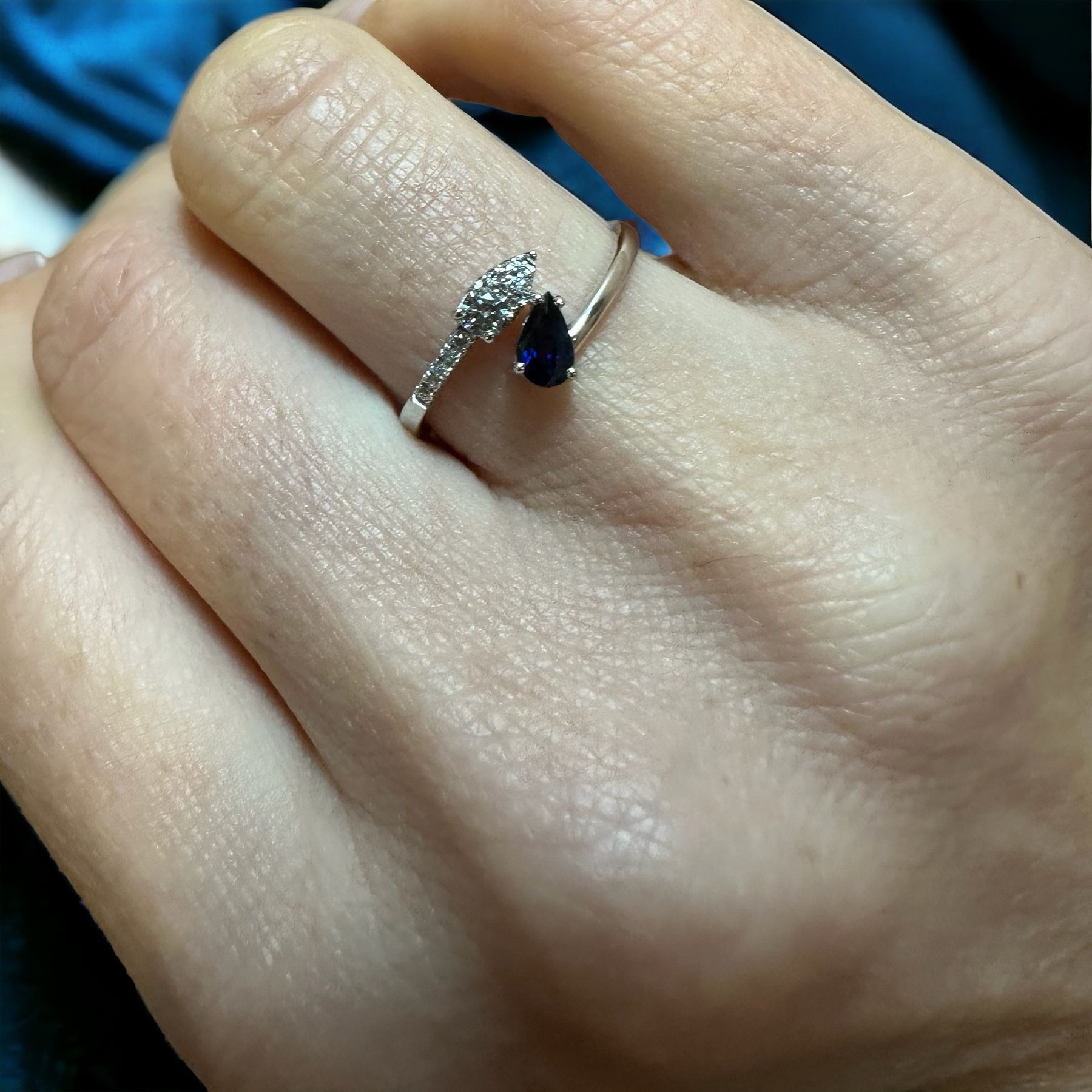 Anello contrariè in oro bianco 18kt con zaffiro e diamanti.