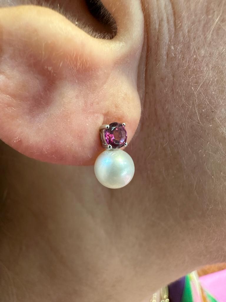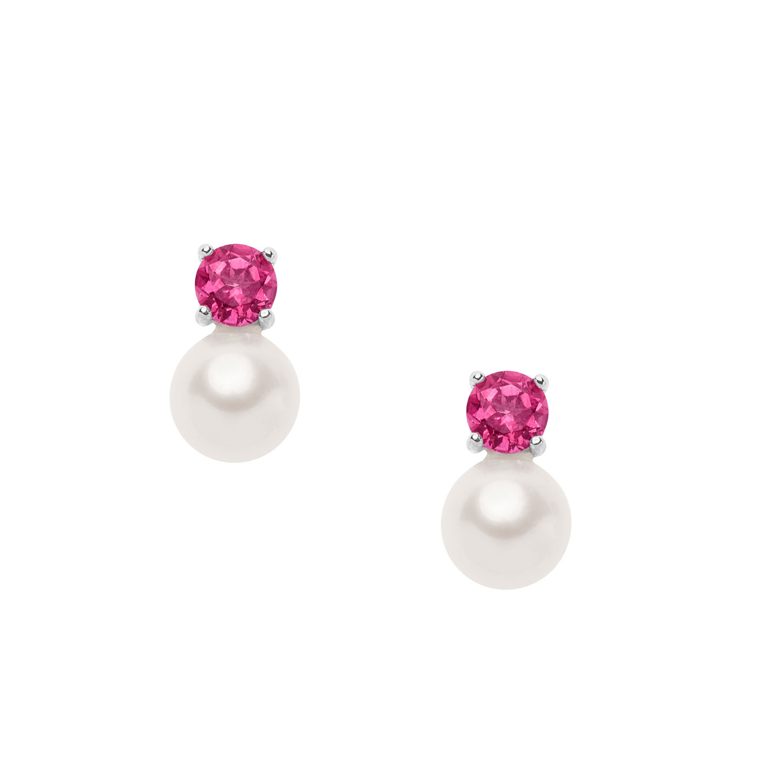 Eleganti orecchini donna in oro bianco 18kt con topazi rosa e perle.
