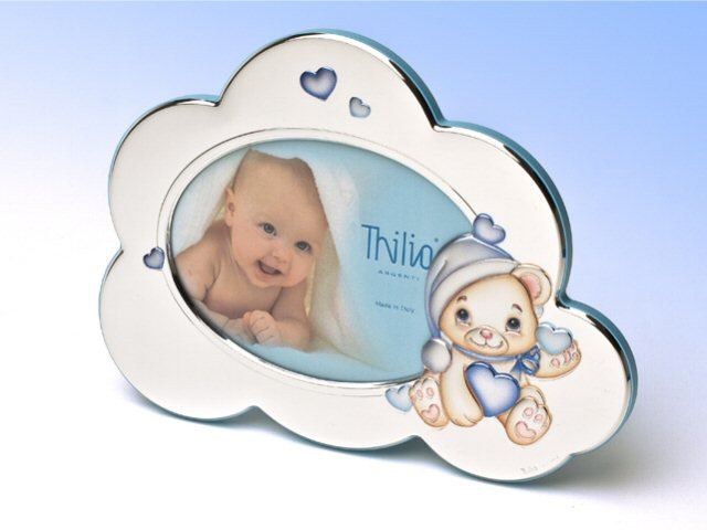 Elegante cornice in argento laminato a forma di nuvola con orsetto, misura 10×15.