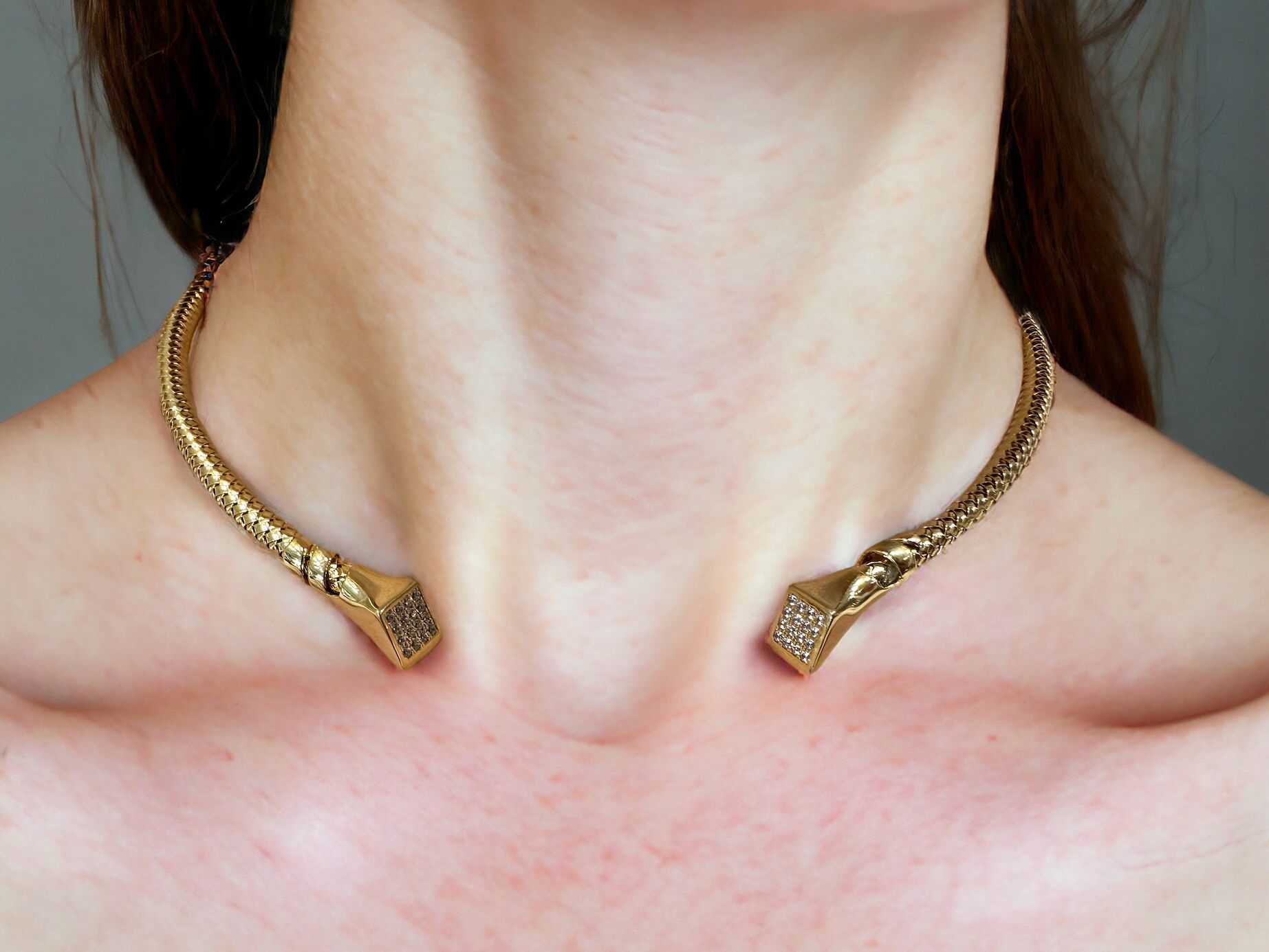 Collana maglia tubogas, in argento 925 dorato con zirconi bianchi.