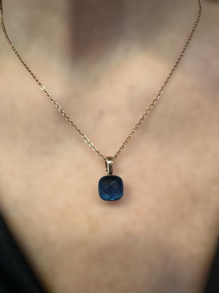 Collana in argento 925 con rifiniture rosè e quarzo idrotermale blu.