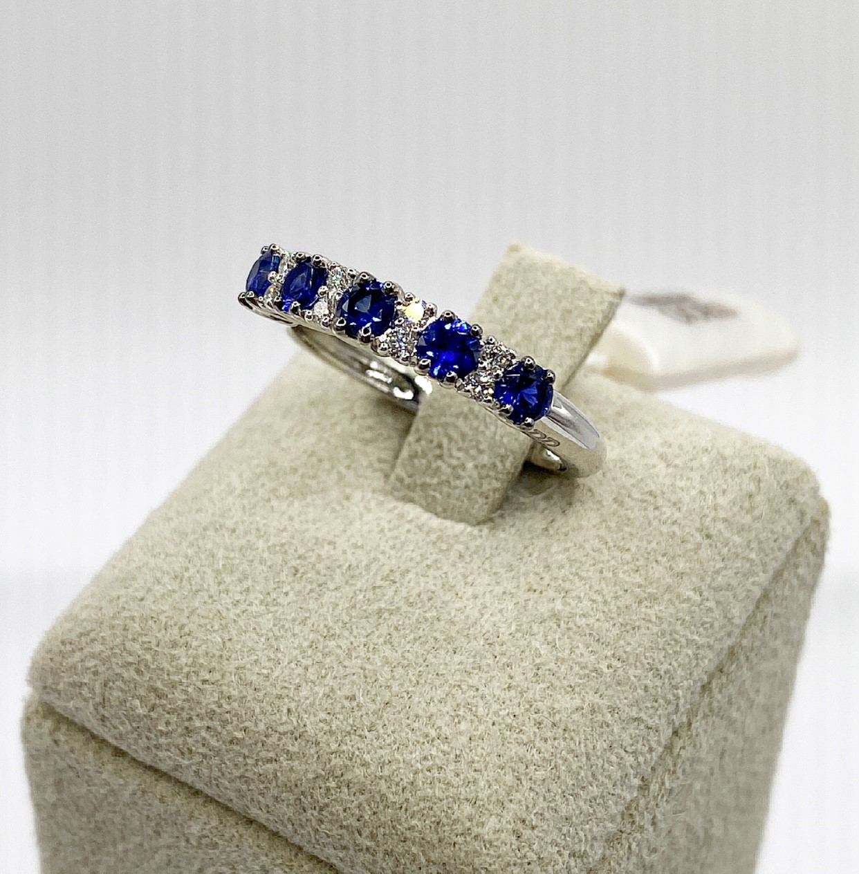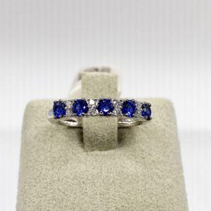 Elegante anello in oro bianco 18kt con diamanti e zaffiri.