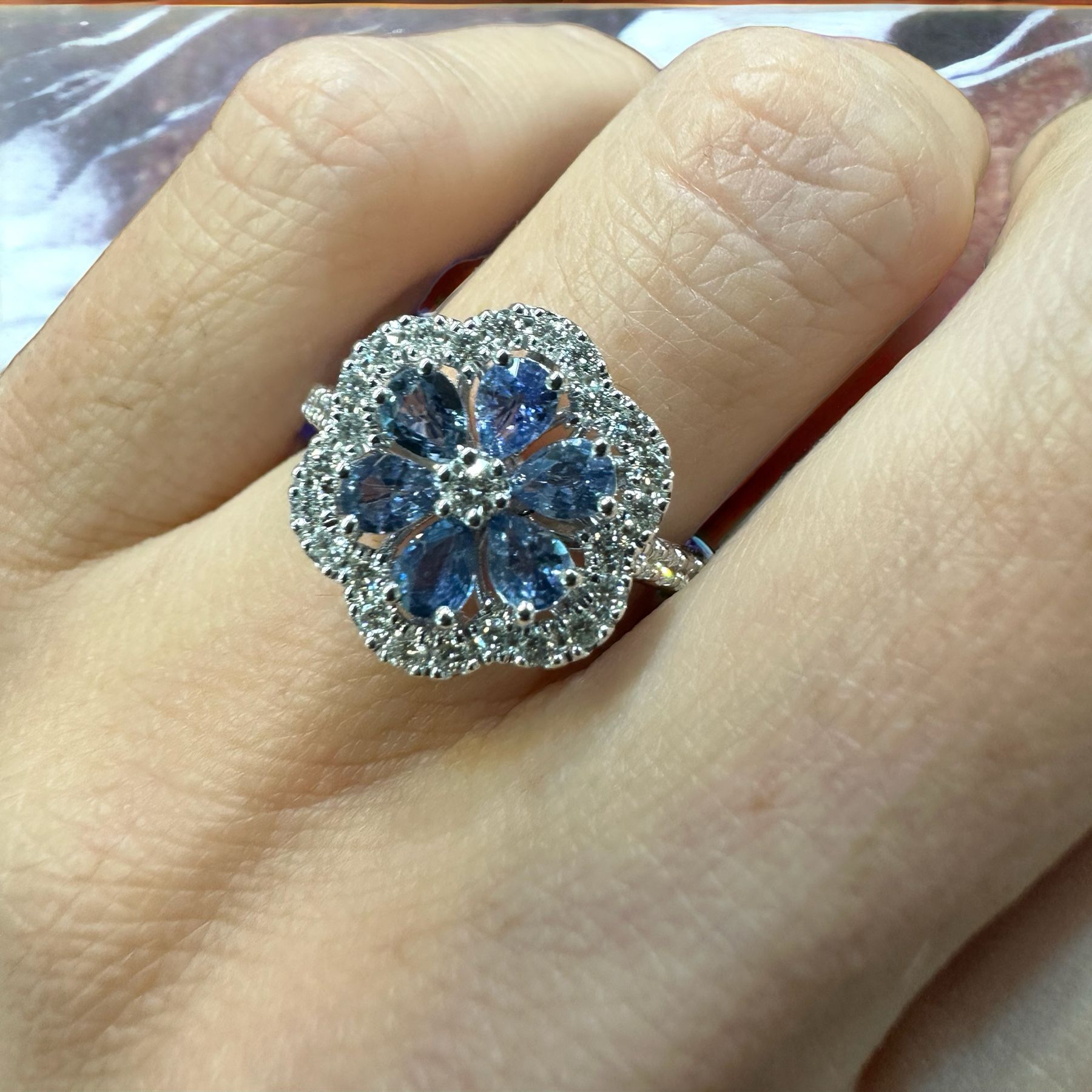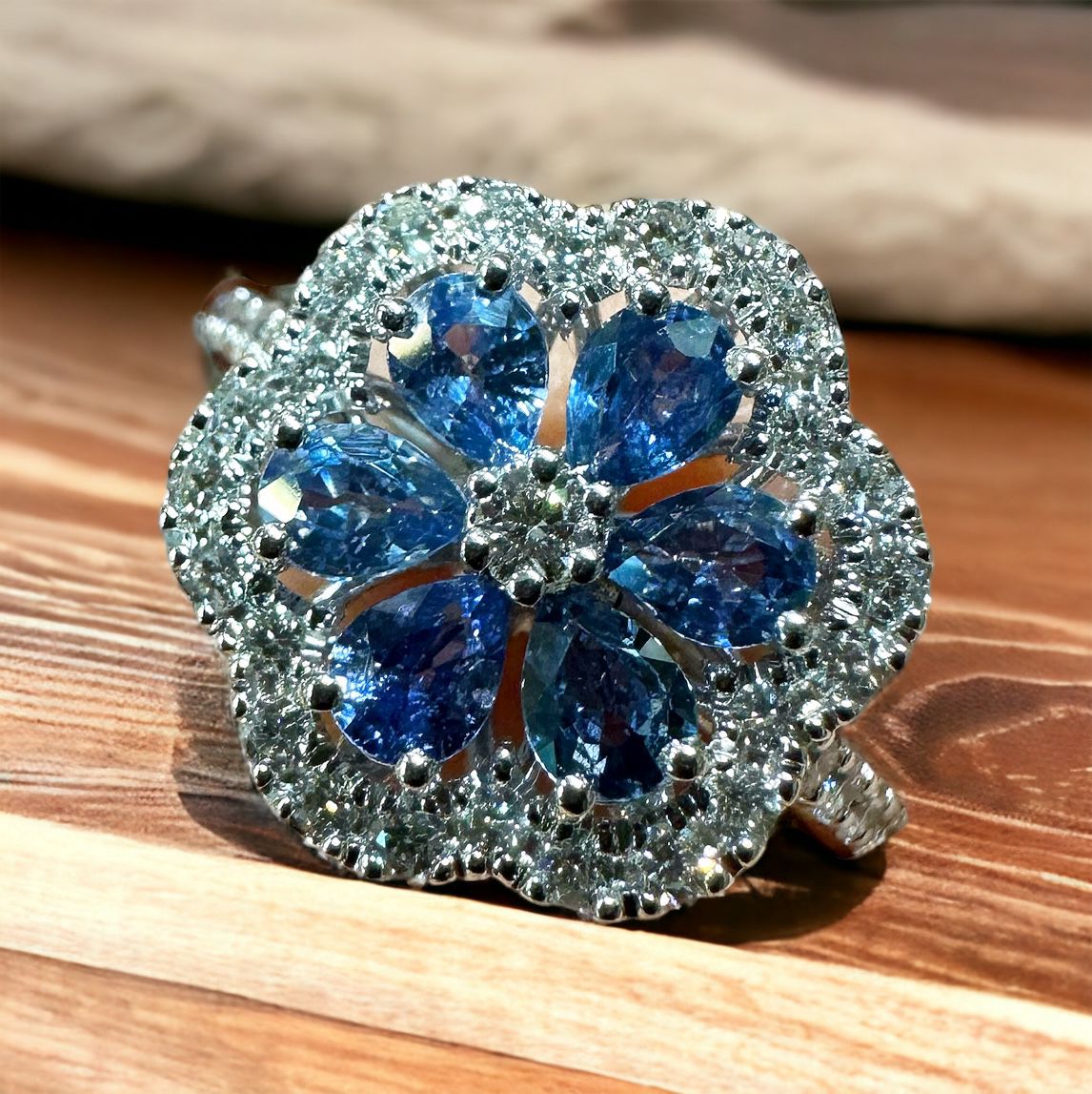 DD Anello fiore in oro con zaffiri e diamanti