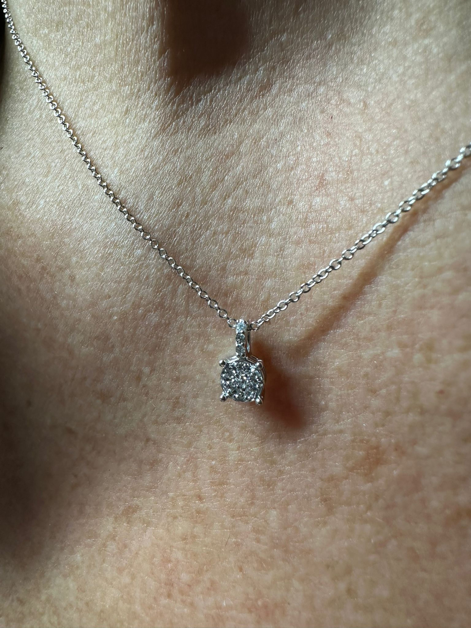 Collana donna punto luce con pavè di brillanti su montatura in oro bianco 18kt  e diamanti sul contranello.