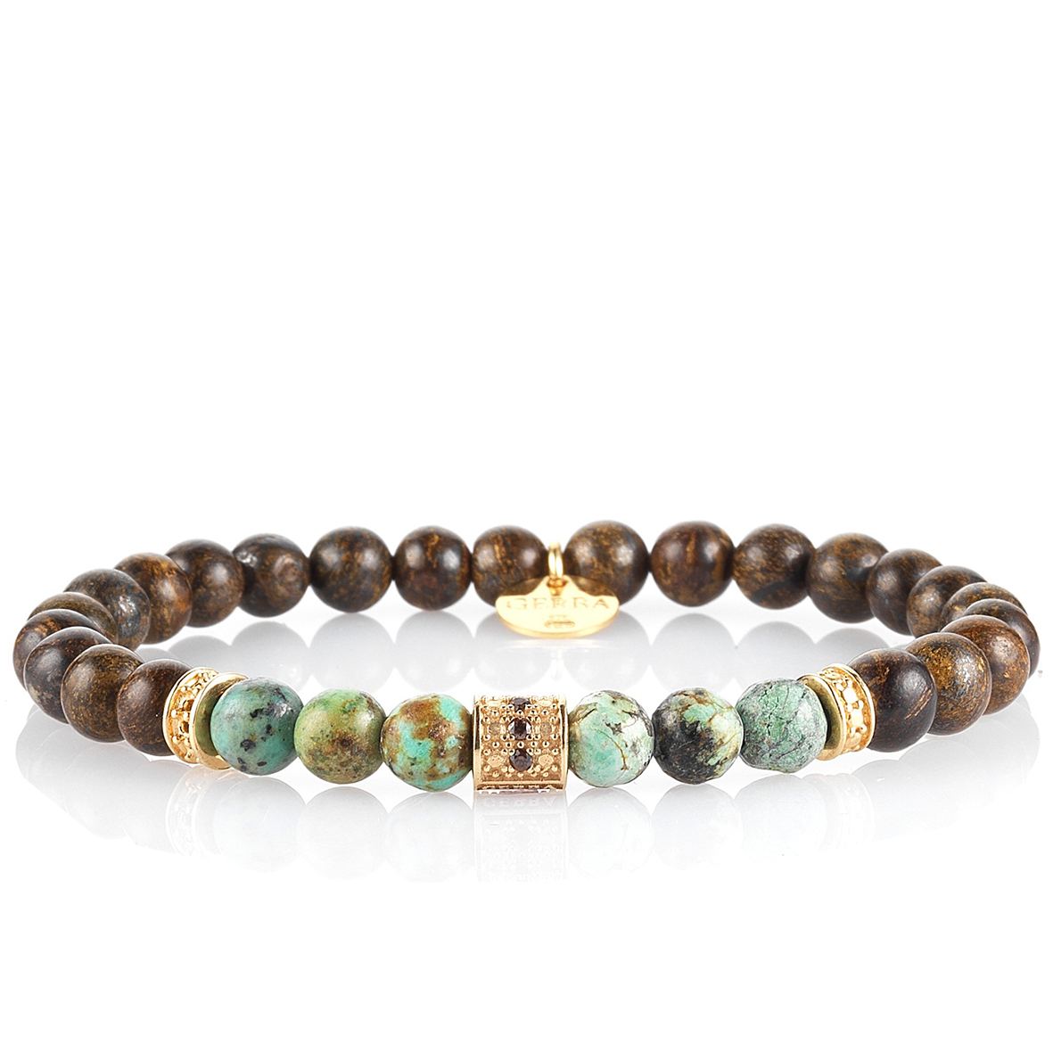 Bracciale Paco con filo elastico, realizzato a mano con Snake Brown, Diaspro, Zirconi marroni e componenti in Argento 925 placcato in oro 18KT.