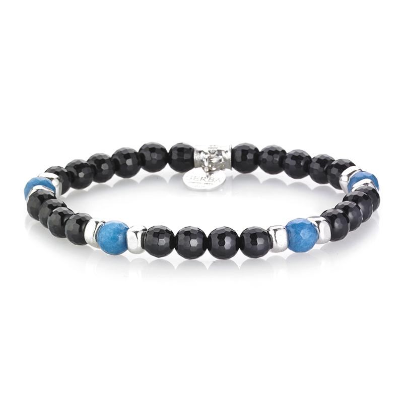 Bracciale elasticizzato con dettagli in argento 925, onice e agata.