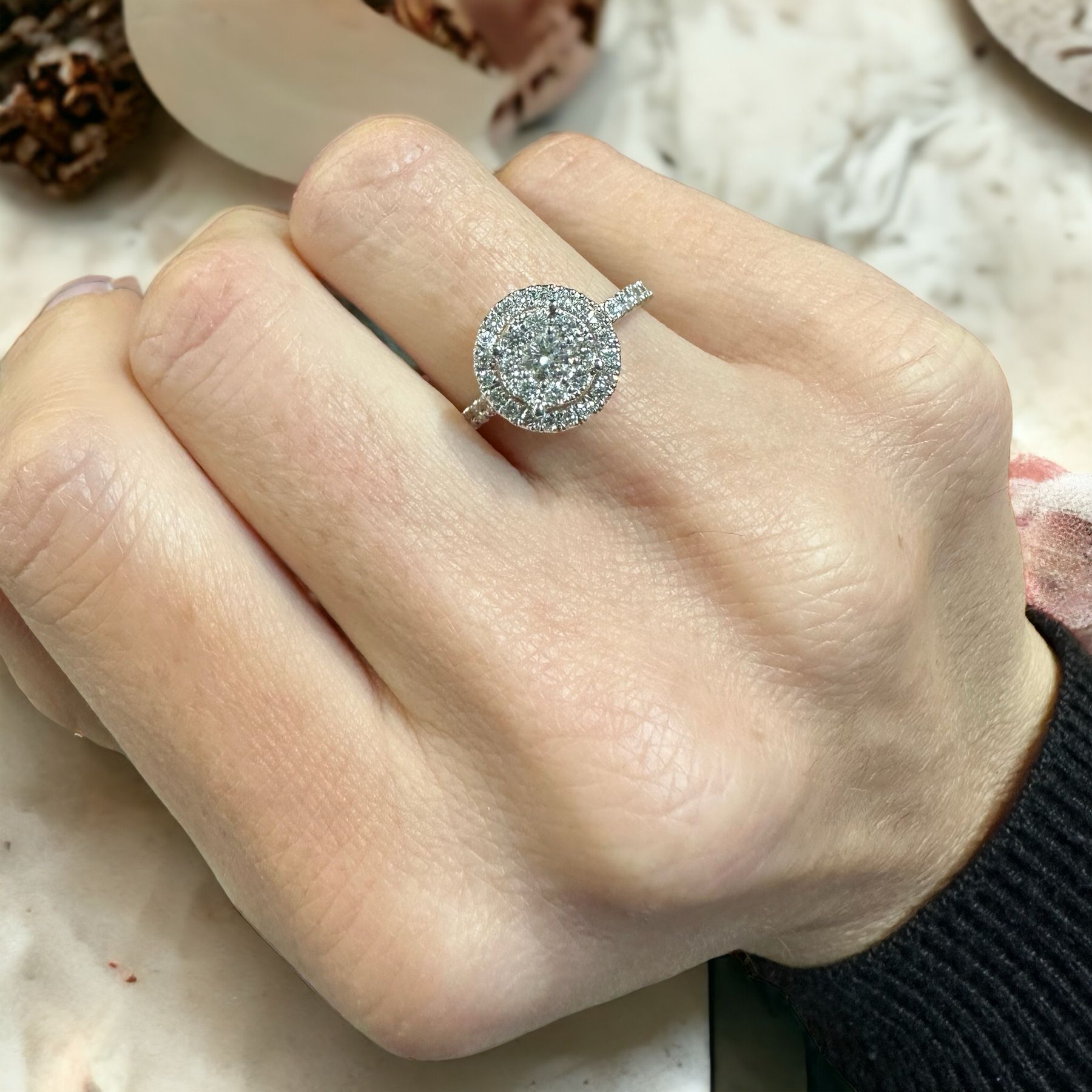 Anello in oro bianco 18kt con diamanti taglio brillante.