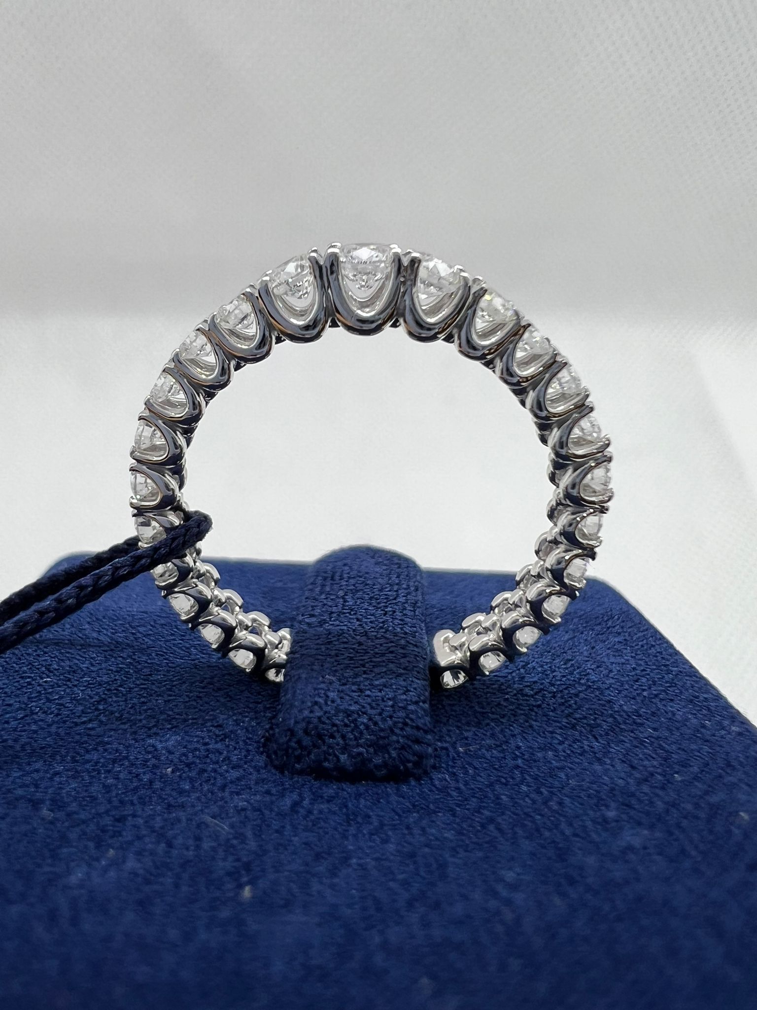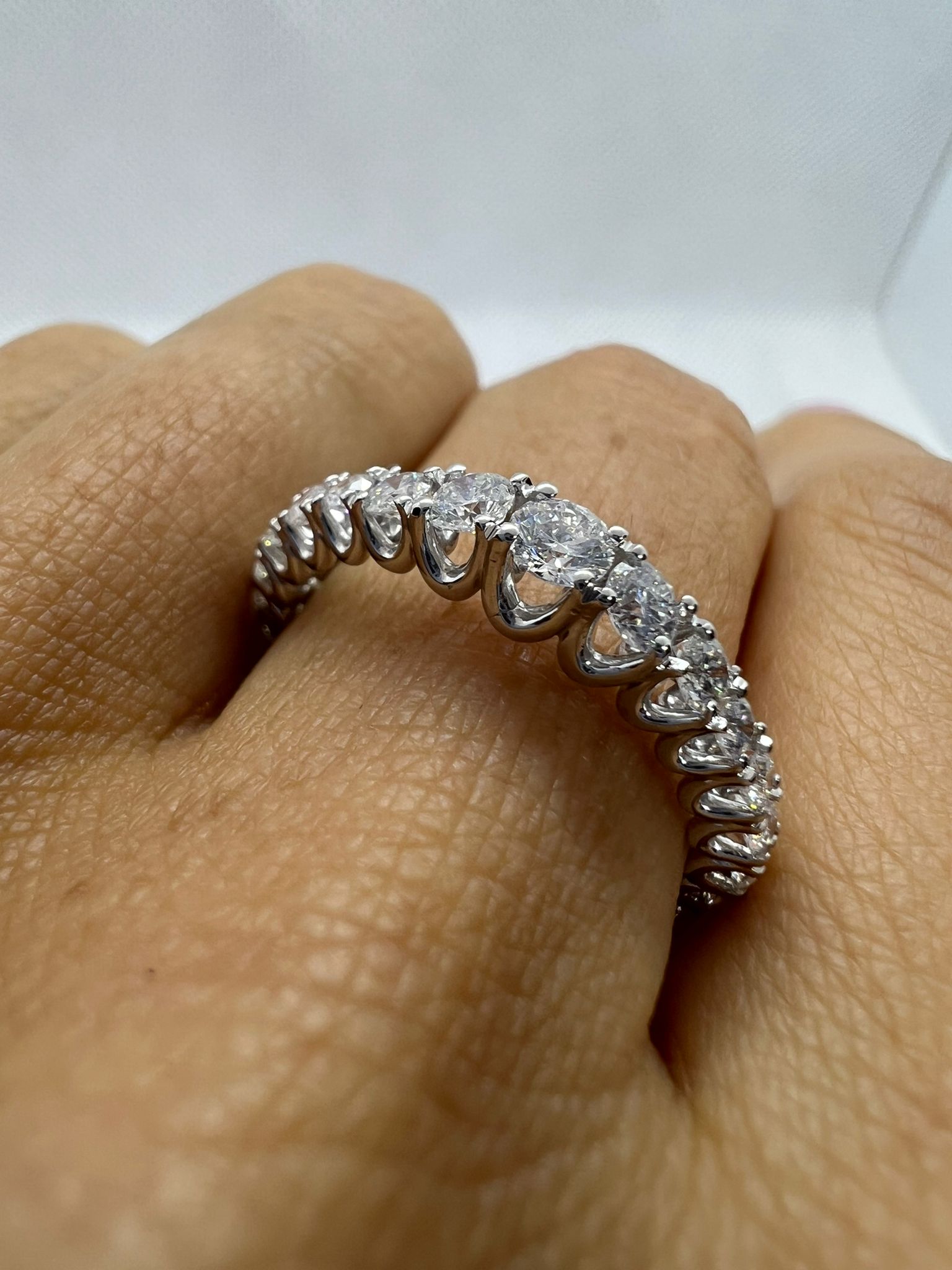 Elegante anello eternity donna in oro bianco 750% con diamanti taglio brillante a scalare.