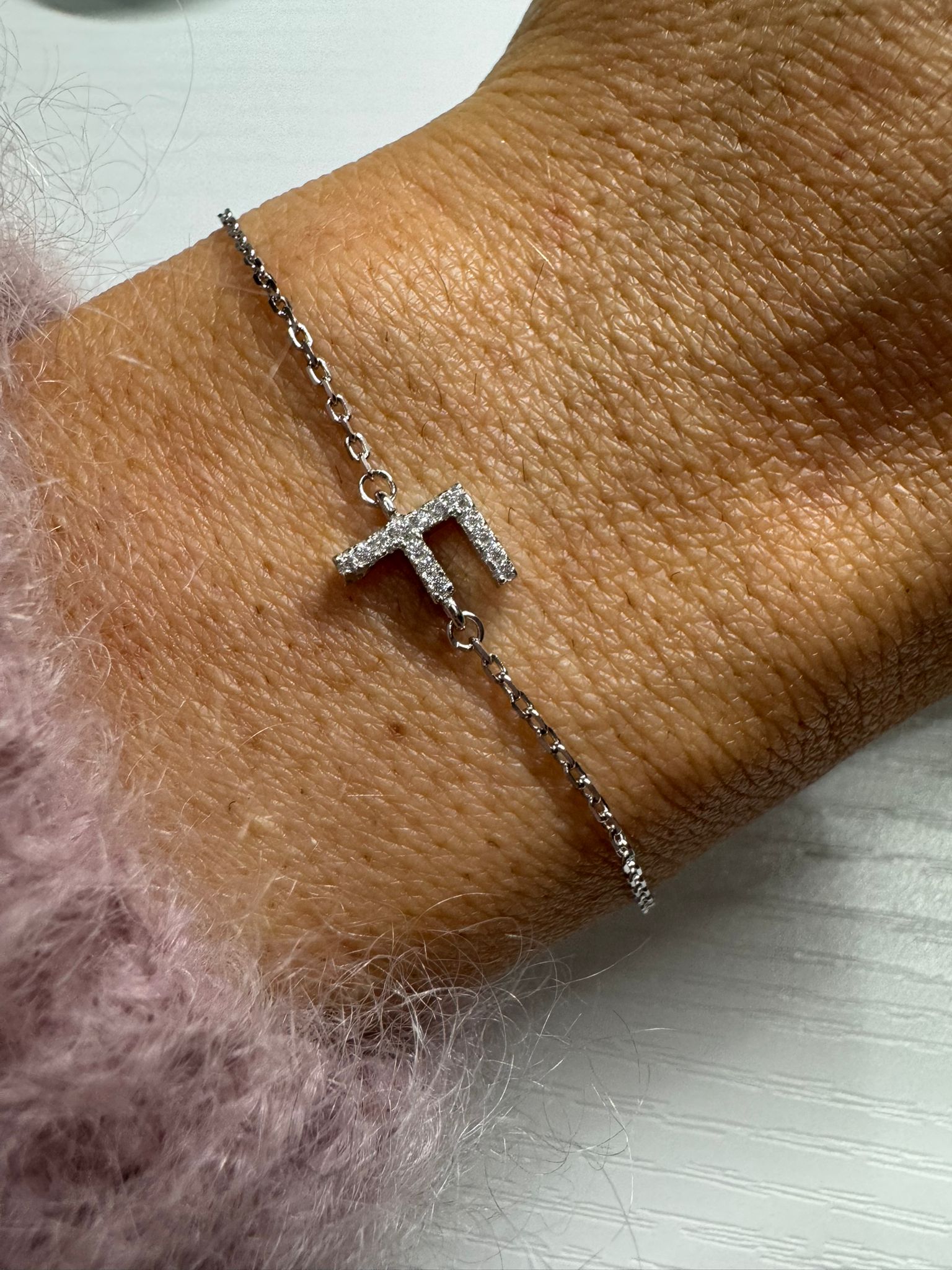 Bracciale da donna in argento 925 con zirconi bianchi e iniziale.