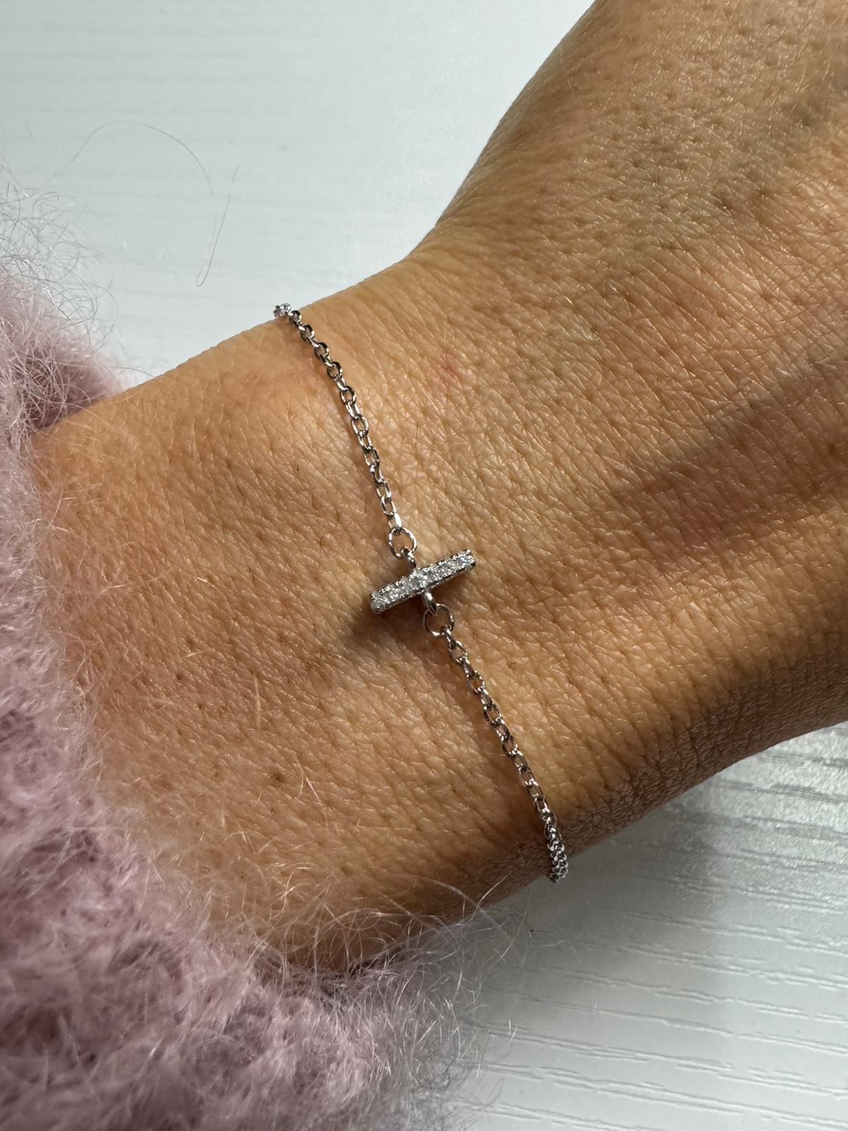 Bracciale da donna in argento 925 con zirconi bianchi e iniziale lettera I.