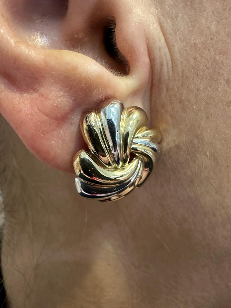 Orecchini in argento 925 bicolor dal sapore vintage/retrò con chiusura a clip senza perno.