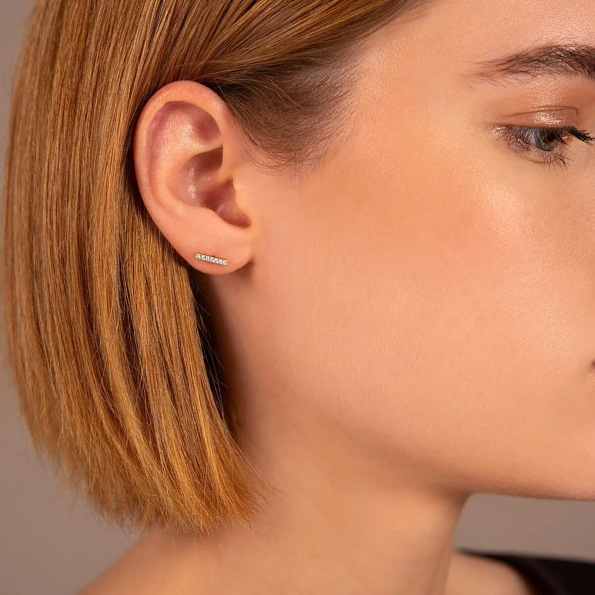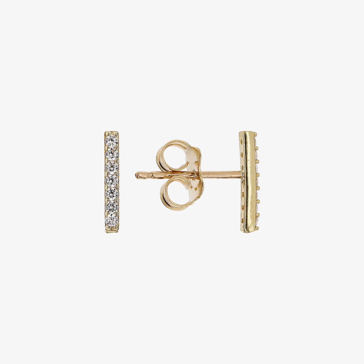 Orecchini a lobo in Oro 375/1000 dal design a barretta impreziosita da piccole cubic zirconia, qualità luminosa.