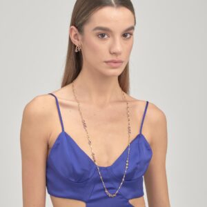 - Orecchini multifilo in golden rosè con placcatura oro rosa 18kt e agata prugna. chiusura con moschettone regolabile.