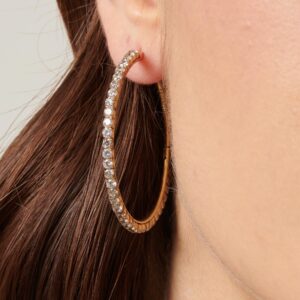 - Orecchini da donna in argento 925 a cerchio con zirconi bianchi sulla parte frontale e interna. Un accessorio perfetto per i vostri look da giorno... e ancora di più per quelli da sera.