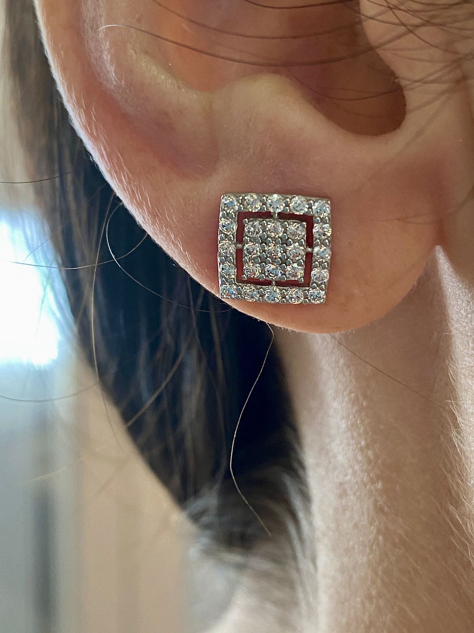 Orecchini in oro bianco 18k con pavè di zirconi.
