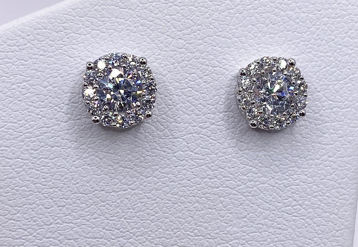Orecchini a lobo in oro bianco 18 kt con zirconi bianchi.