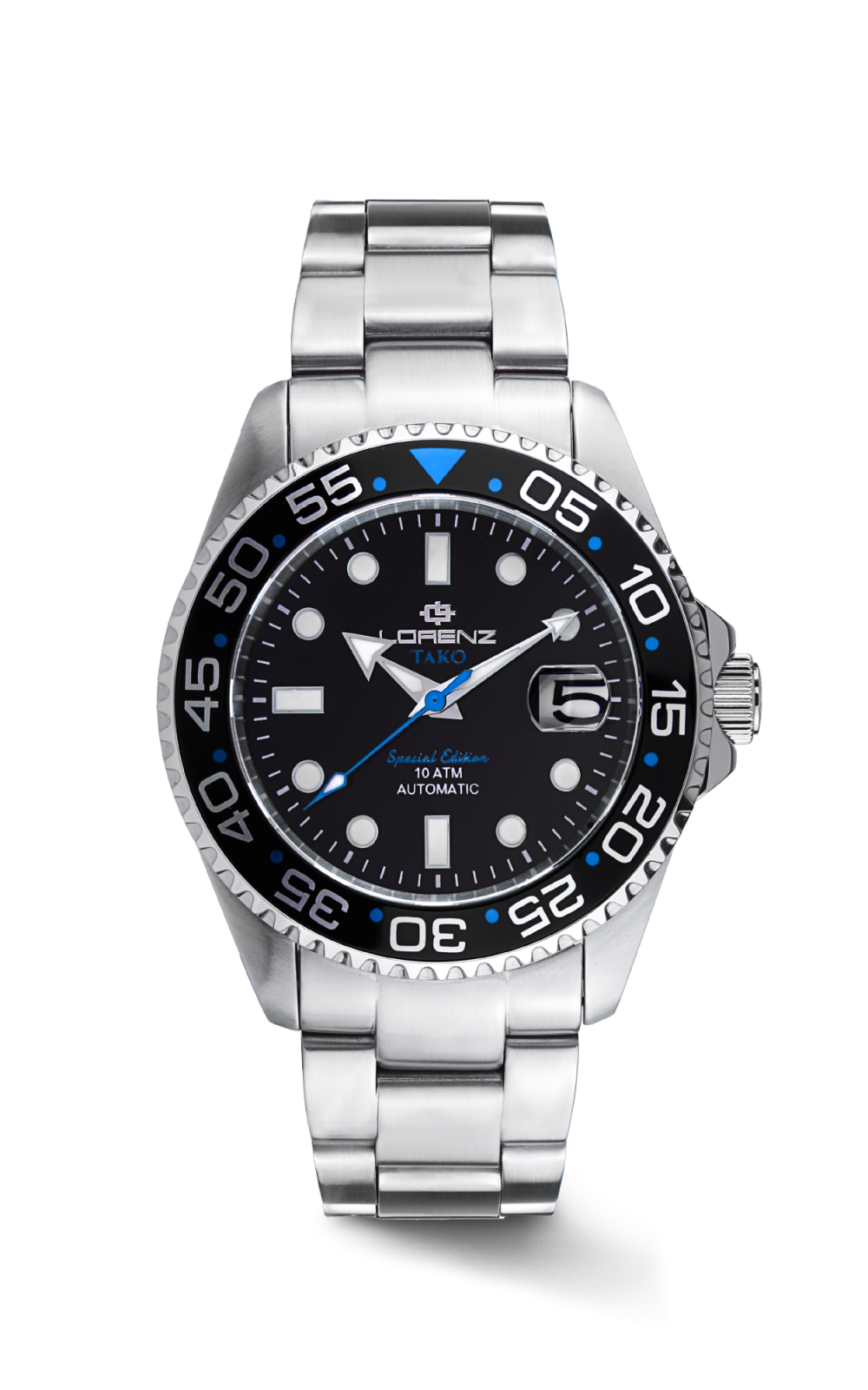 Tako è il nome del nuovo orologio subacqueo, un equilibrio perfetto tra robustezza ed eleganza. La cassa in acciaio inossidabile 316L da 43 mm di diametro conferisce a questo orologio presenza e durabilità. La lunetta girevole unidirezionale in ceramica è resistente ai graffi e garantisce una leggibilità impeccabile. La corona è a vite e attraverso il fondello trasparente si può ammirare il movimento equipaggiato con massa oscillante personalizzata. Il nuovo Tako assicura un’impermeabilità fino a 100 metri. Il vetro zaffiro con lente ciclopica offre protezione eccezionale contro i graffi garantendo visibilità cristallina del quadrante. Al cuore di questo orologio batte il movimento automatico Seiko NH35, noto per la sua precisione e affidabilità. Il bracciale in acciaio è dotato di una fibbia solida con meccanismo di sicurezza. Questo orologio subacqueo automatico è il segnatempo perfetto per chi cerca una combinazione di stile, funzionalità e solidità, rendendolo un compagno affidabile per ogni avventura.