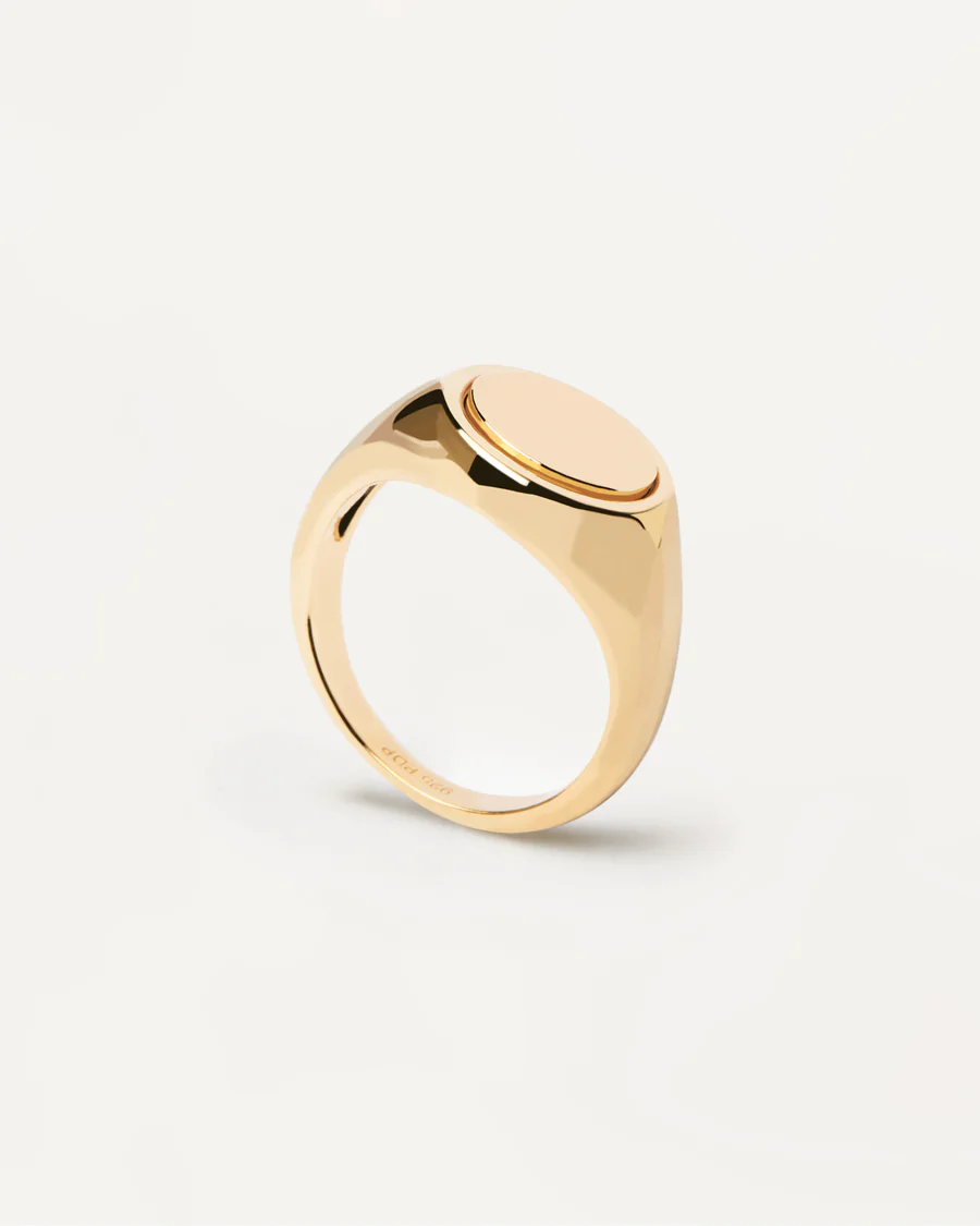Pdpaola Anello sigillo in argento dorato