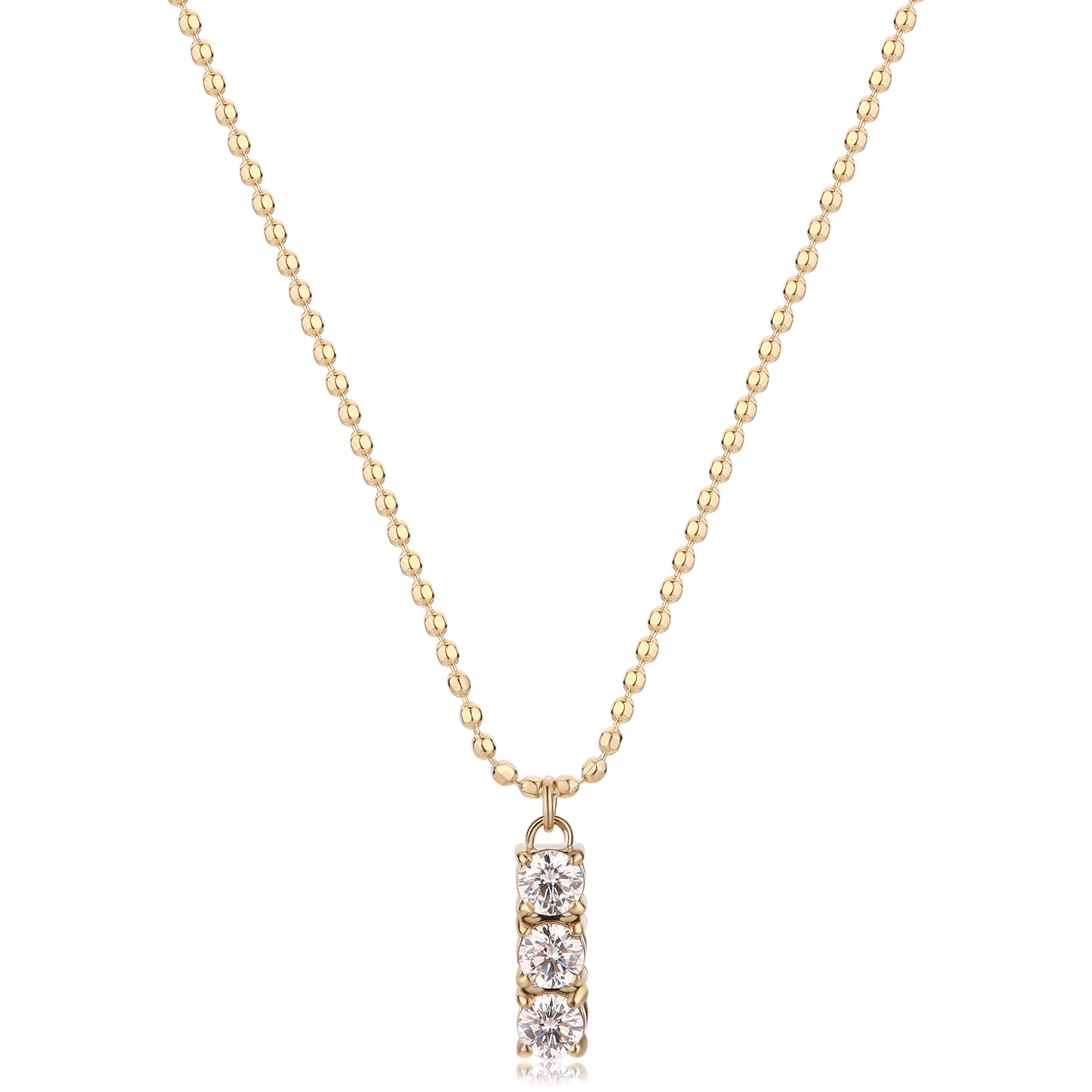 Collana girocollo a sfere piccole in acciaio 316L, finitura pvd oro 14K e pendente centrale con cubic zirconia.