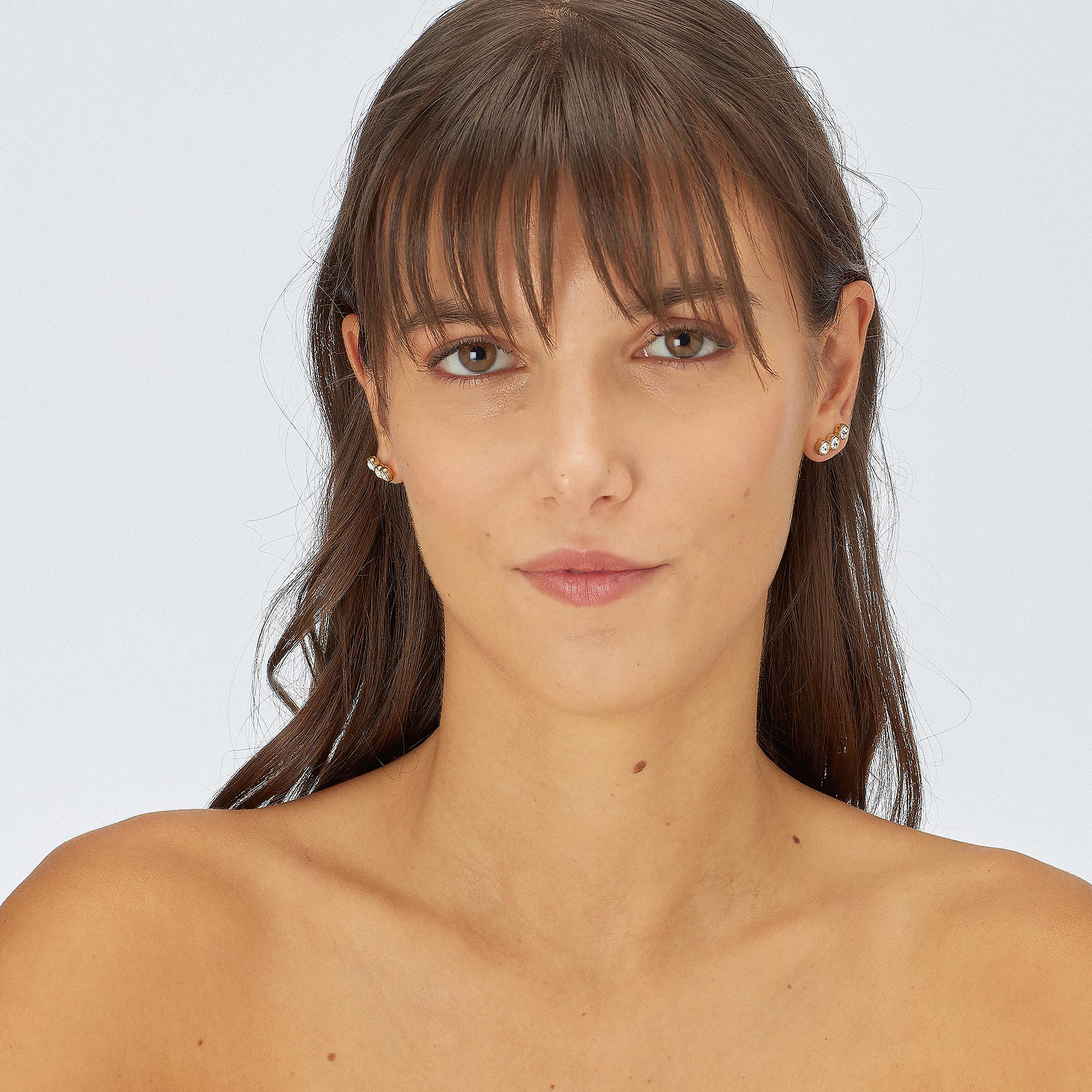 Orecchini a lobo in acciaio 316L e finitura pvd oro 14K con cristalli.