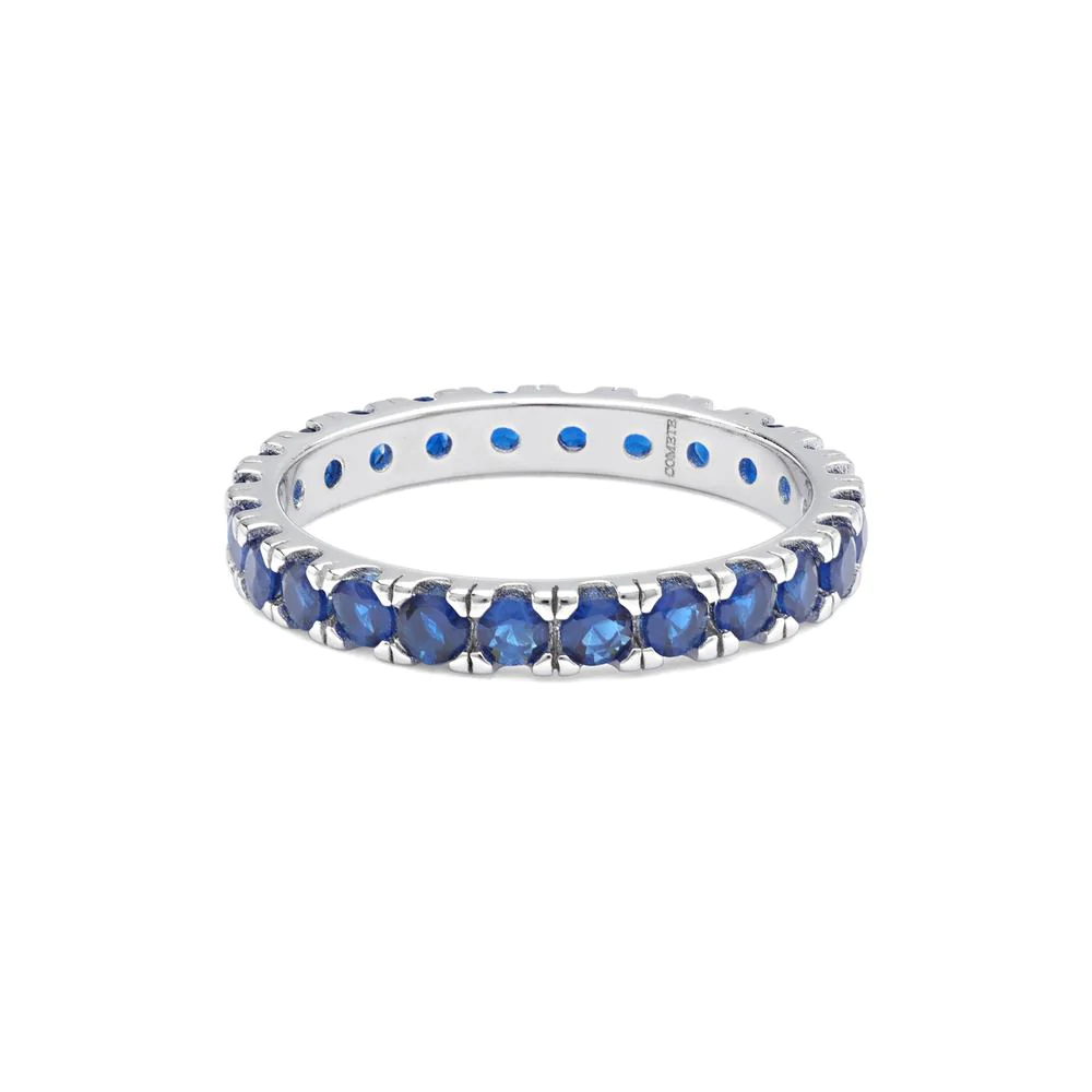 Elegante Anello tutto giro in Argento 925‰ caratterizzato da una fila ininterrotta di lucenti zirconi di colore blu.