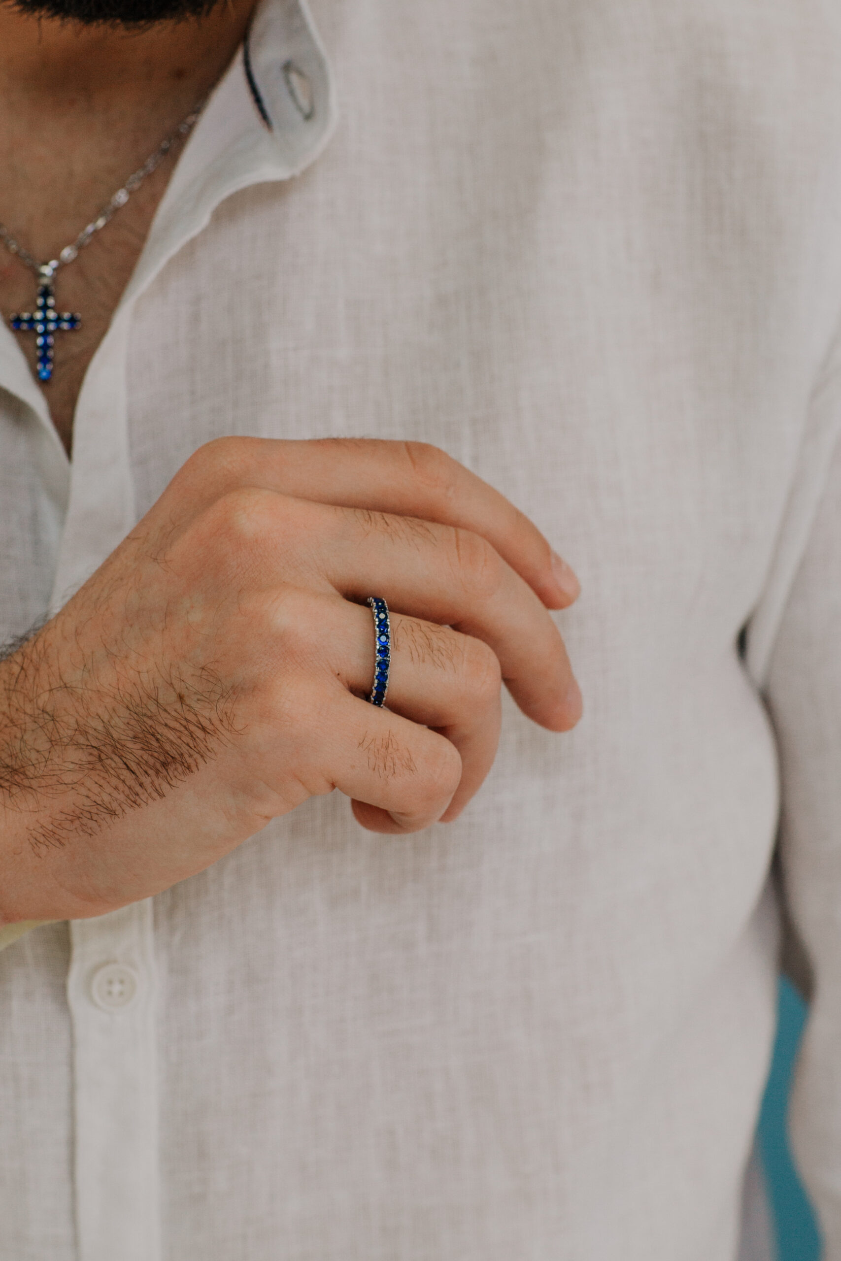 Comete Uomo anello argento zirconi blu