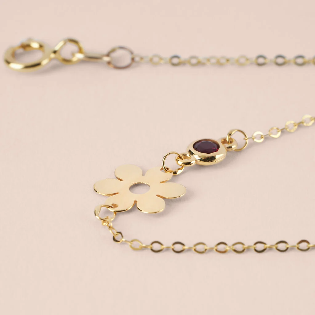 Bracciale bambina in oro giallo 9kt con fiore e chiusura regolabile.