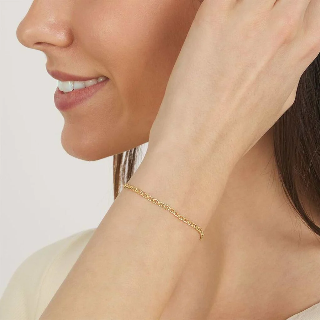 Bracciale unisex in oro giallo 9kt con maglia traversina e chiusura a moschettone.