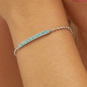 - Bracciale con sfere in acciaio 316L e centrale con cristalli colore aqua bohemica.