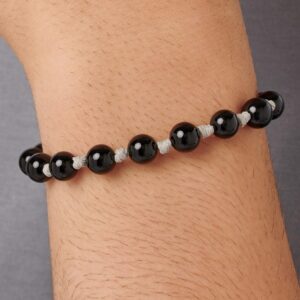 - Bracciale in acciaio 316L con cordino cerato grigio e sfere in agata nera.