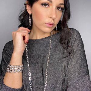 - Orecchini lunghi con maglia ovale grande e fascio pendente in catena grumetta. Chiusura con perno e farfalla. Gli accessori rappresentano il nostro status e definiscono il nostro stile. Completa i tuoi outfit con questi orecchini, abbinali a collana e bracciale coordinati o crea il tuo mix & match. Un design elegante e ricercato per dare unicità al tuo look.