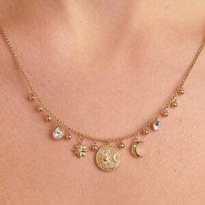 - Realizzate in argento placcato oro 18 carati, le collane dello Zodiaco presentano un simbolo astrologico incorniciato da brillanti zirconi. I design rappresentano il modo in cui ogni simbolo prende vita quando mostra il suo pieno significato: universi privati che sono una parte essenziale di un insieme. ARIETE: Esplorare il mondo in camper. L’anima della festa. Far accadere le cose. Grandi ricercatori…