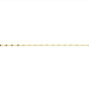 - Collana in bronzo dorato lucido lunga 43 cm composta da catena traversino a due lati piatti e chiusura con anello a molla ed anelli di allungamento. Un gioiello davvero unico che si ispira ad un amato classico della moda catene reinventandolo in una chiave più leggera e giovanile.