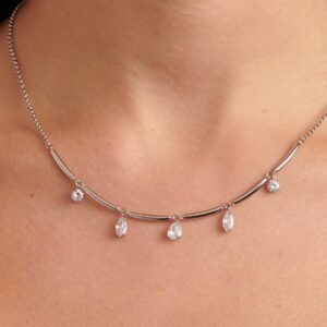 - Collana girocollo in acciaio 316L e cubic zirconia.