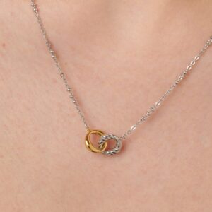 - Collana girocollo in acciaio 316L e finitura pvd oro 14K.