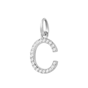 Ciondolo lettera C in oro bianco con zirconi